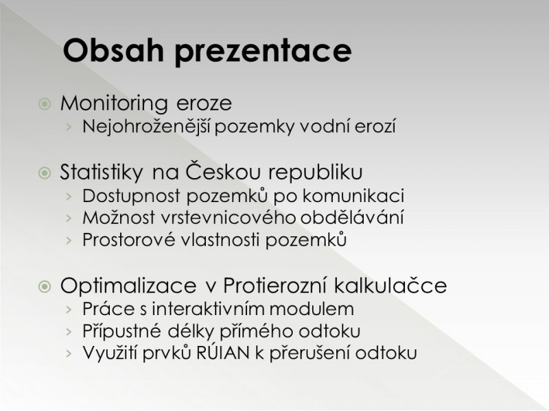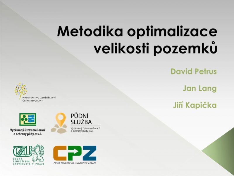 Prezentace ze seminářů - Ing. David Petrus - Výzkumný ústav meliorací a ochrany půdy, v.v.i. Metodika optimalizace velikosti zemědělských pozemků.